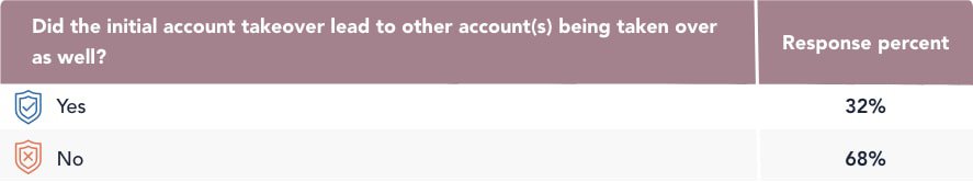 On a more positive note, 68 percent of account takeover victims only had one account taken over, while 32 percent had other accounts taken over as a consequence of the initial account takeover.