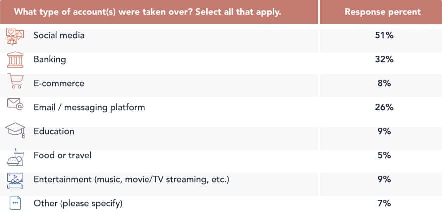 While any type of account can be taken over, these are the most common account types for it: