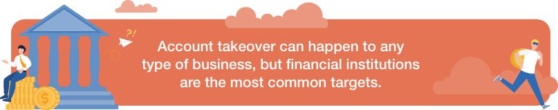 Research from the cybersecurity firm Deduce found that one-third of account takeovers are of bank accounts specifically, which includes both financial services and financial technology accounts. Second to financial institutions are online retailers, particularly those with one-click payment systems. However, as we mentioned earlier, account takeover can happen to any company, regardless of location, size, and industry.6