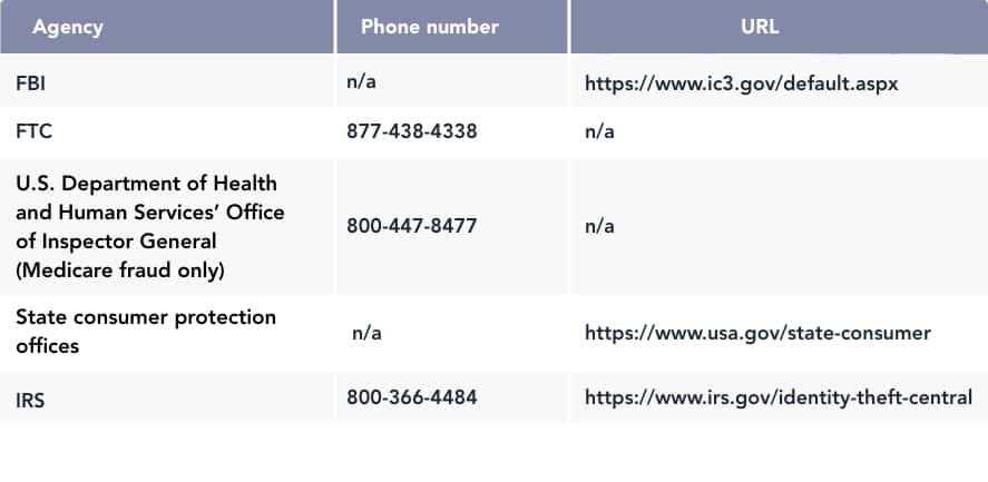 • Report it to government agencies. Report the fraud to the proper federal, state, and local authorities.10