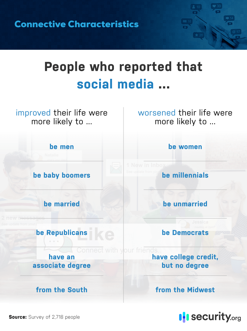 Overall, those who claimed social media improved their lives were more likely to be men, baby boomers, Republicans, and from the South. Being married and having an associate degree also seemed to be linked to viewing social media in a more positive light. On the other hand, those who believed social media worsened their lives were more likely to be women, millennials, Democrats, and from the Midwest. Coinciding with their tendency to be younger, those with this negative belief were also more likely to be unmarried and have an incomplete college degree.